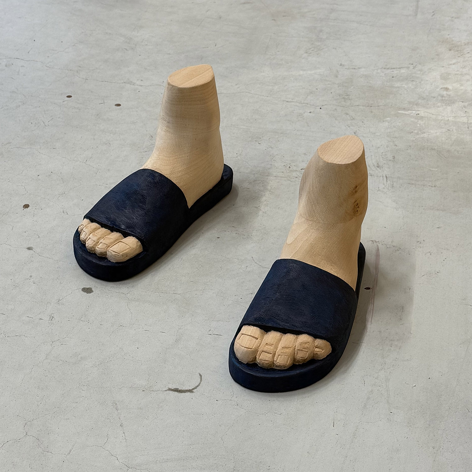 Proper carved wooden feet ‘All inclusive / all intrusive’ by Moritz Weinig