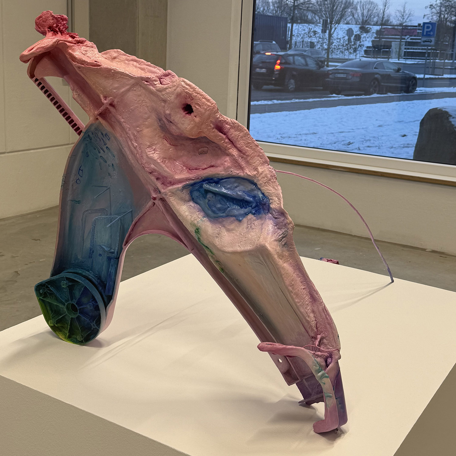 A painting object based on a burned trash container ‘Cover-Up’ by Gayeon Lee